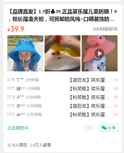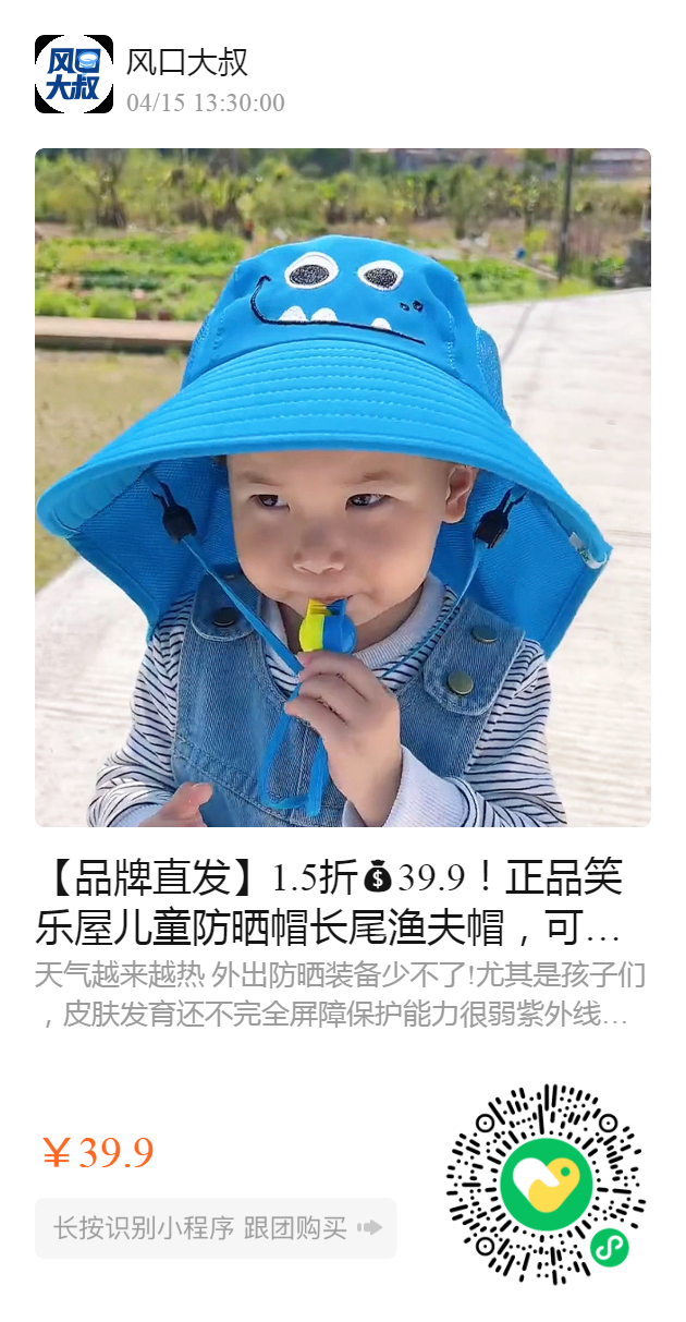 【品牌直发】1.5折39.9!正品笑乐屋儿童防晒帽长尾渔夫帽,可拆卸防风绳+口哨装饰,防晒指数UPF50+❗️