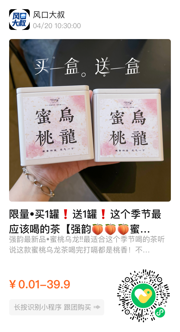 限量•买1罐❗送1罐❗这个季节最应该喝的茶【强韵🍑🍑🍑蜜桃乌龙】果香➕茶香 让你喝水也有仪式感‼ 安溪铁观音乌龙茶+蜜桃冻干,清爽配方 好喝无负担! ✅乌龙茶绵柔甜润,茶香四溢 ✅蜜桃馥郁果甜而不腻,口感丝滑香 让你爱上喝水,拥有整天快乐