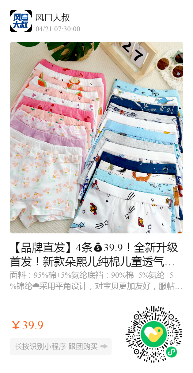 【品牌直发】4条39.9!全新升级首发!新款朵熙儿纯棉儿童透气抑菌内裤!