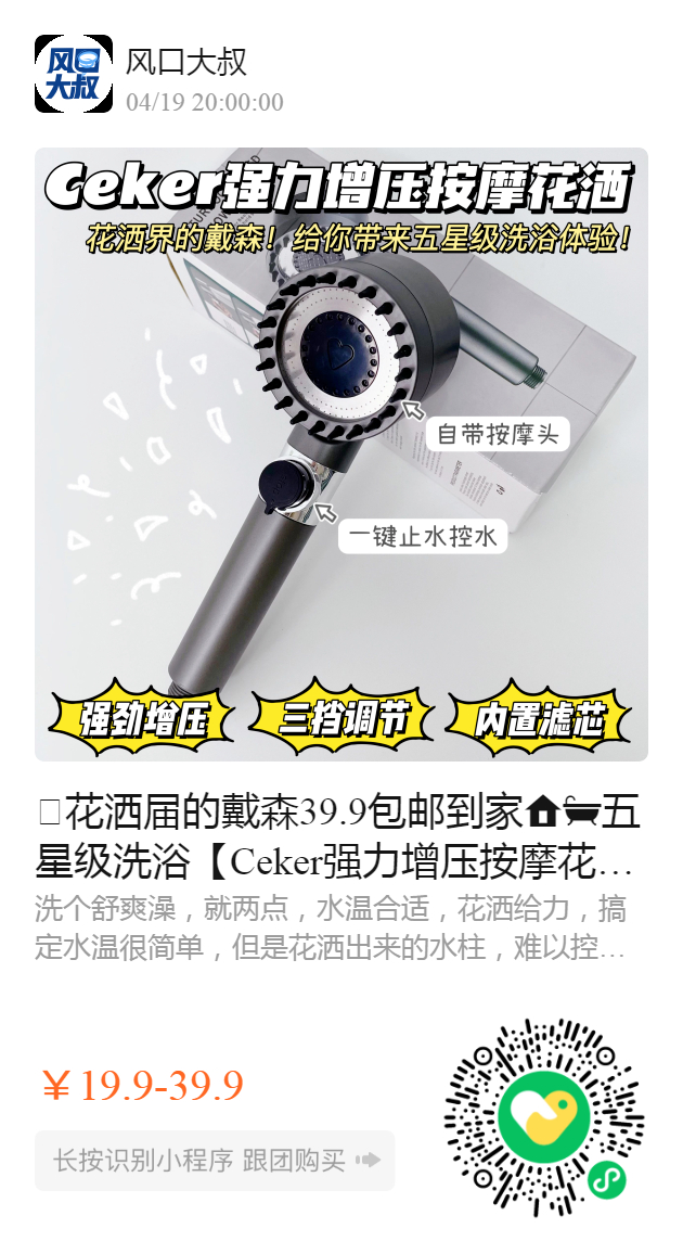 出差都要带着,洗澡的时候让你舒服到尖叫,像做了一次马杀鸡超强加压,旋转控制水压,超舒服,硅胶尖头,还能按摩头皮🏻