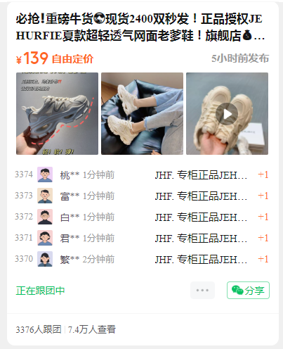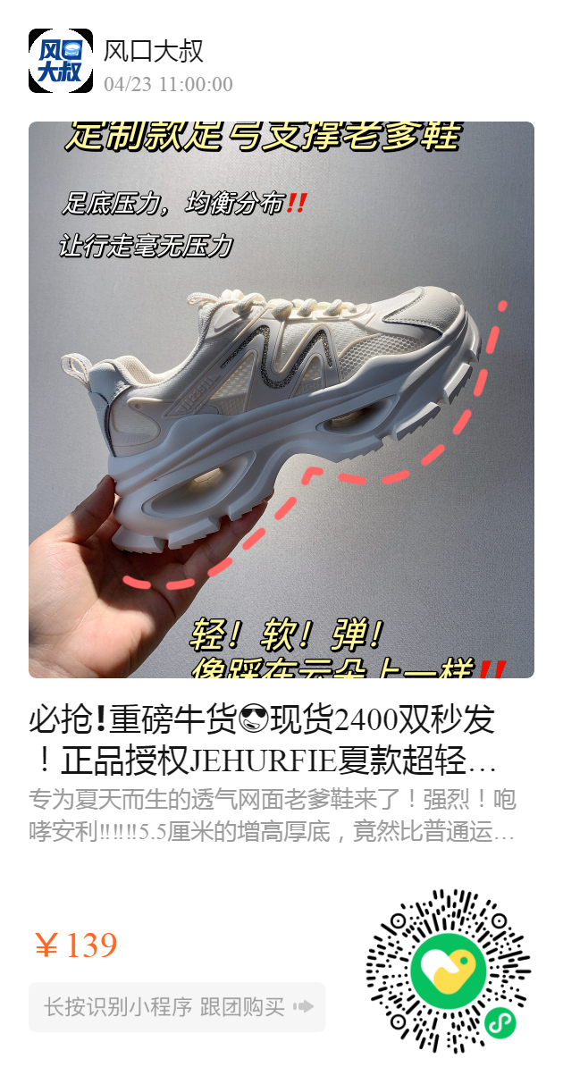 必抢❗️重磅牛货😎现货2400双秒发!正品授权JEHURFIE夏款超轻透气网面老爹鞋!旗舰店799,开团139!!