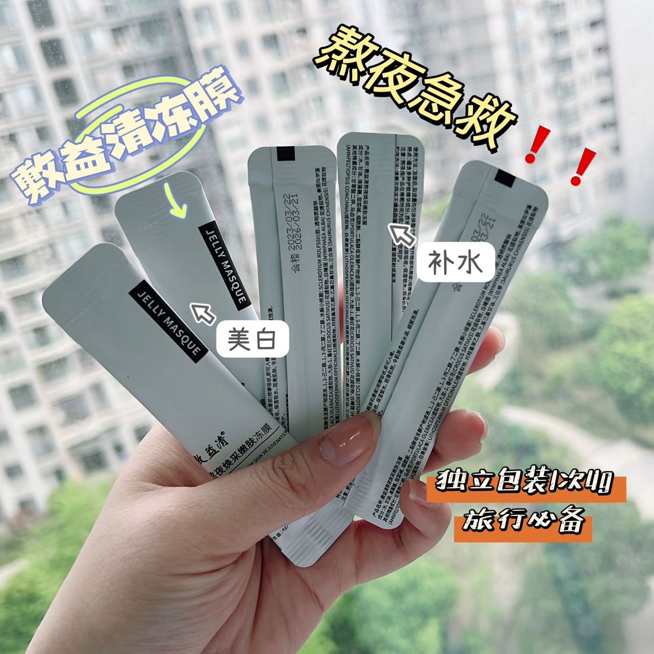 夏日小冰箱退!退!退! 泛红!敏感肌的姐妹!给我冲它! 熬夜急救❗️❗️敷益清冻膜次抛 ✅美白提亮 ✅补水保湿 ✅抗老抗衰 19.9到手一盒20包 1包4g 一次一扔干净卫生 做一次面膜不到1块钱🤯 有效期至:26年3月