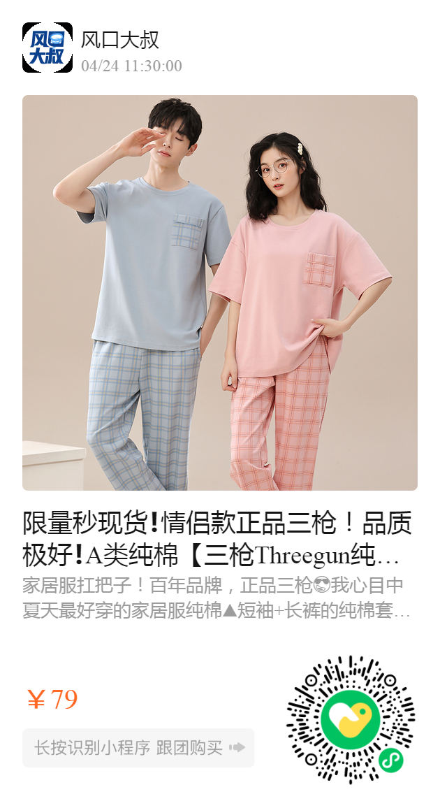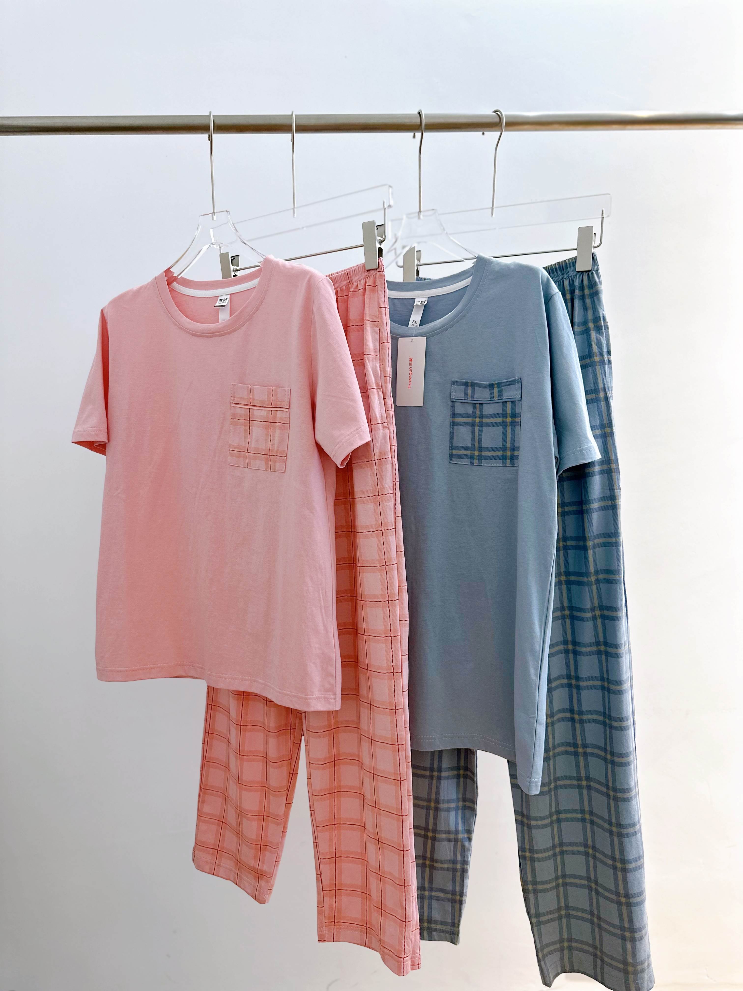 限量秒现货❗️情侣款正品三枪!品质极好❗️A类纯棉【三枪Threegun纯棉情侣格子家居服套装】超实用的睡衣套装❗️舒适纯棉,越洗越软200斤以内都能穿️