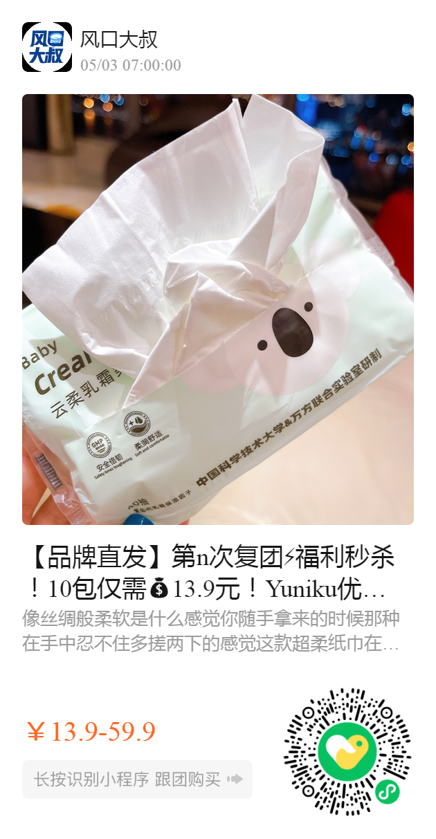 【品牌直发】第n次复团️福利秒杀!10包仅需13.9元!Yuniku优尼可 丝柔乳霜柔纸巾,像丝绸一样柔软纸巾!太太太好用了!