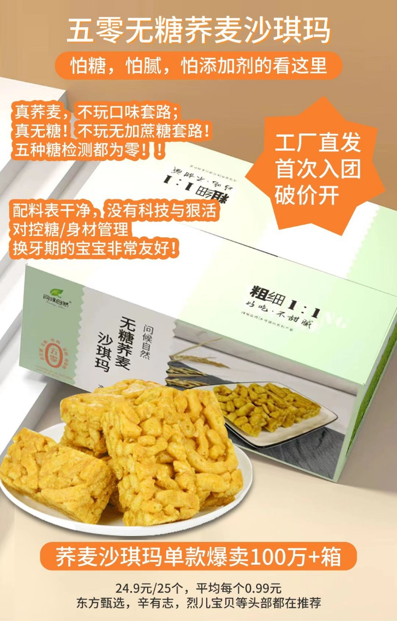 快团独家首发沙琪玛天花板24.9到手25个【问候自然无糖沙琪玛】东方甄选力荐真荞麦,真无糖❗️味道纯正又健康❗️