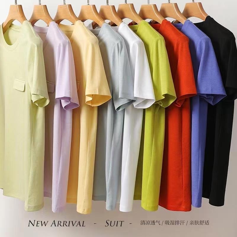 【有氧周末-醋酸高质感凉感纯色T】新升级凉感+免烫✅真正的80支精梳丝光棉❗️比普通T恤高级十倍