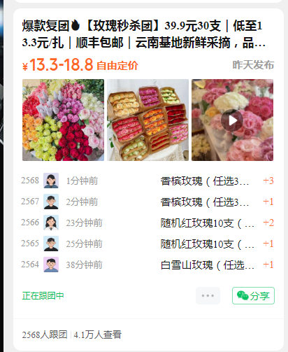 产品名称:玫瑰秒杀团