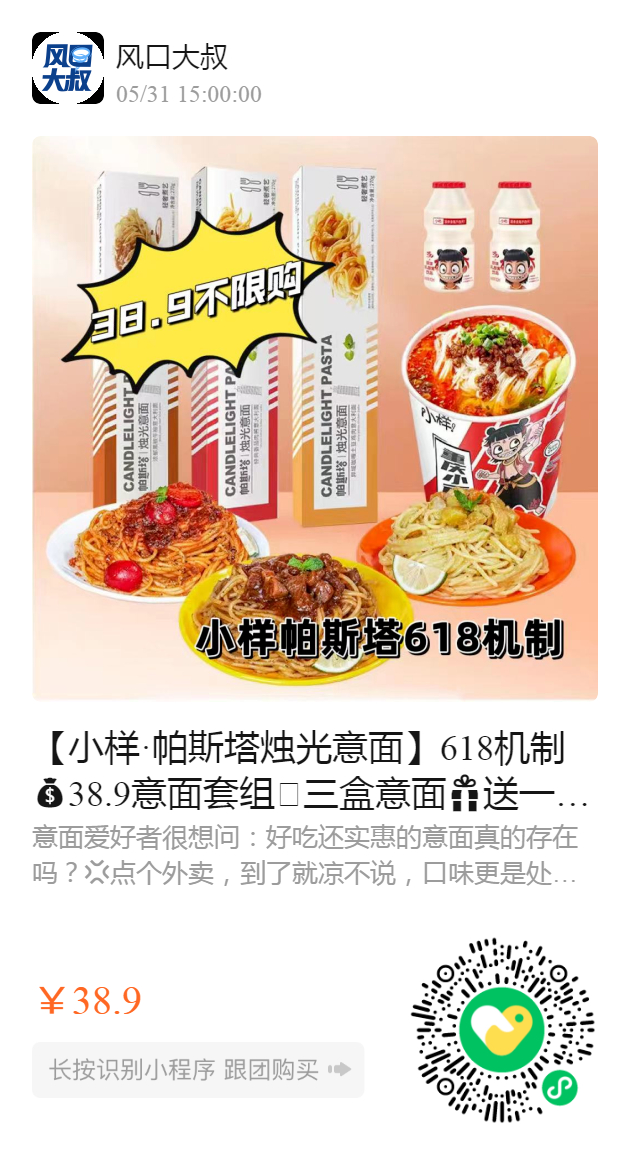 【小样·帕斯塔烛光意面】618机制38.9意面套组🤩 三盒意面送一盒重庆小面送二瓶乳酸菌 配料包一应俱全15min搞定高档西餐厅同款意面 三款口味️ 黑椒牛柳|番茄肉酱|咖喱土豆鸡肉都是百吃不厌的经典 真材实料,严格检测,做法简单,秒变大厨