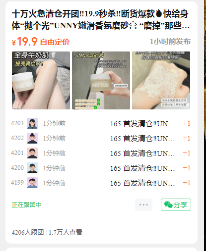 十万火急清仓开团‼️19.9秒杀‼️断货爆款快给身体“抛个光”UNNY嫩滑香氛磨砂膏 “磨掉”那些“磨人”的肌肤问题