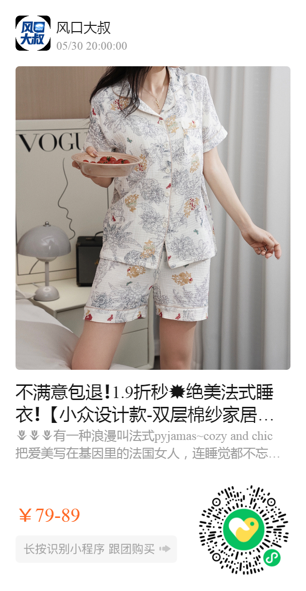 产品名称:小众设计款-双层棉纱家居服