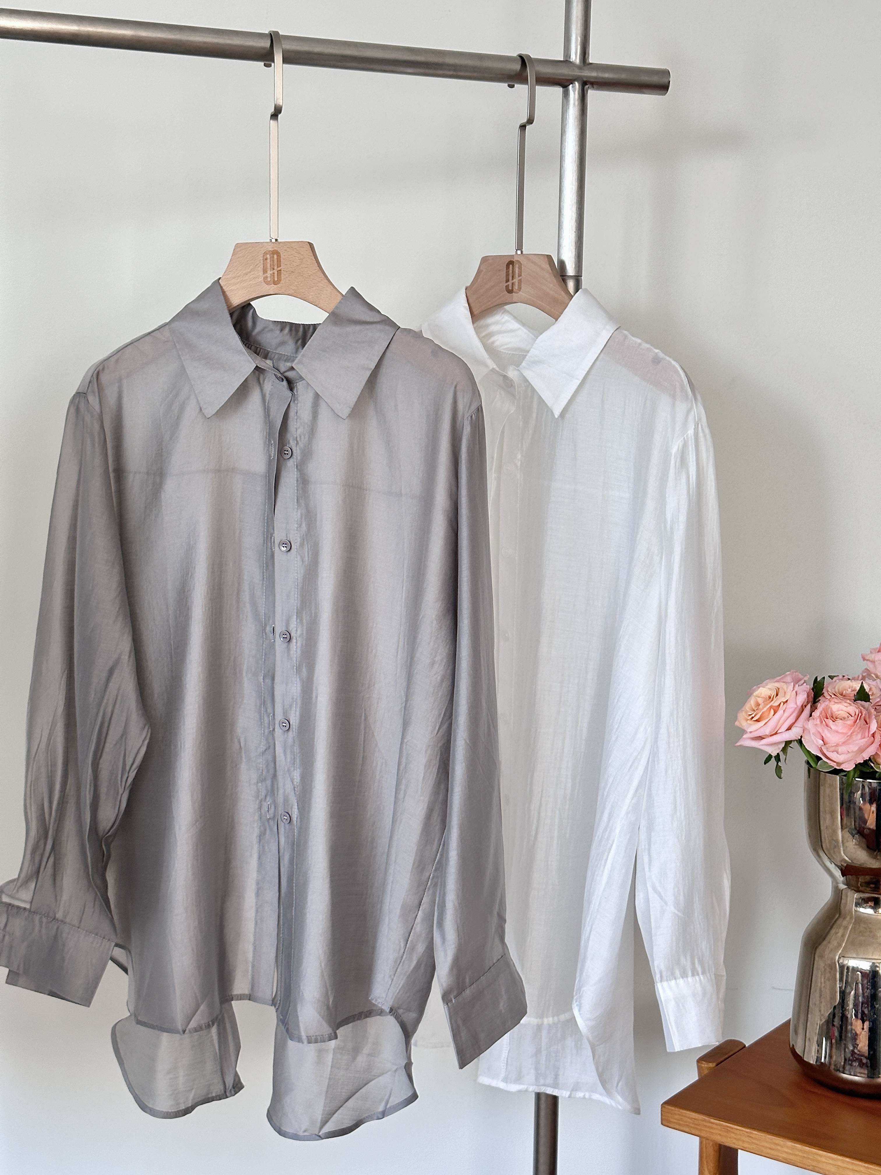 高级天丝麻❗️日本进口面料 鎏光系列❗️自带光泽感 超舒适的高级天丝麻轻薄长袖衬衣 无法抗拒的颜值防晒衬衫 日常又不失慵懒感️后背开叉扣设计 随便穿穿就是casual的感觉 自留两件都嫌少804NYNK