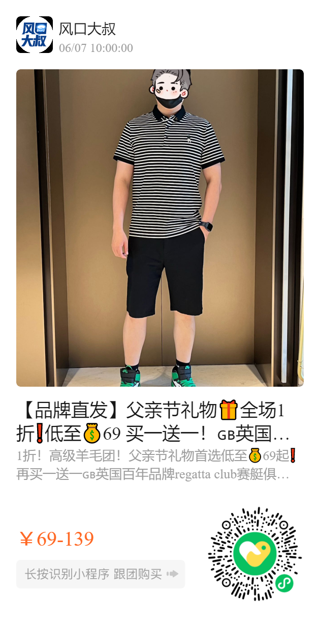 ✅5款:圆领T、polo衫、条纹衫、短裤、西裤