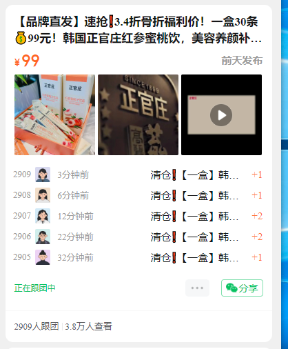 开 团 数:2909