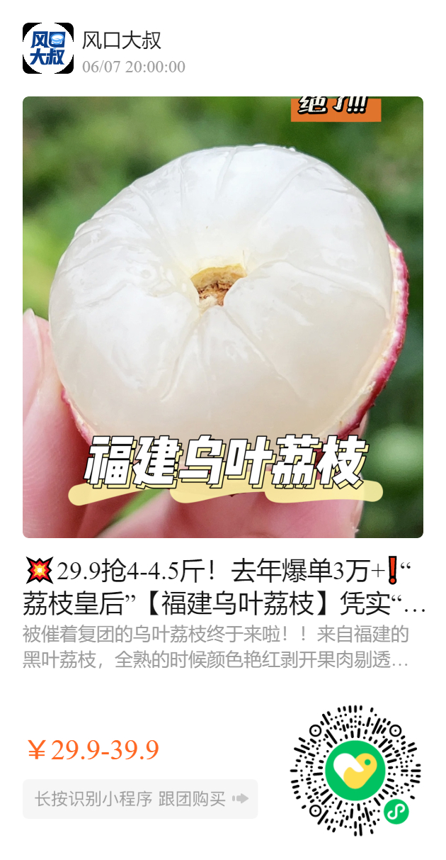 💥29.9抢4-4.5斤!去年爆单3万+❗️“荔枝皇后”【福建乌叶荔枝】凭实“荔”俘获市面上基本上没有卖的!想吃就得抓紧了~ 不泡冰水‼️不泡药水‼️味道纯正皮薄肉厚,果肉Q弹 味道鲜美,香甜多汁冰镇下,味道绝了😎 家人们,赶紧行动起来吧