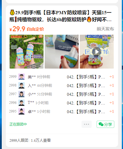开 团 数:2999
