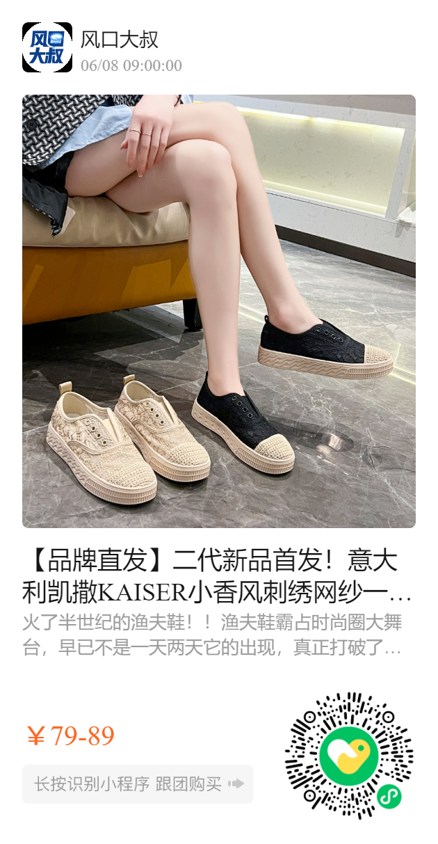 【品牌直发】二代新品首发!意大利凯撒KAISER小香风刺绣网纱一脚蹬渔夫鞋,穿脱方便,2个颜色!