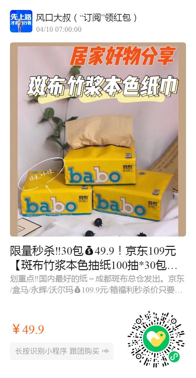 限量秒杀‼️30包49.9!京东109元【斑布竹浆本色抽纸100抽*30包】号称国内最好的纸!100%纯原生竹浆 | 不漂白无荧光 | 柔韧不掉屑 | 食品级接触 | 抑菌更健康!