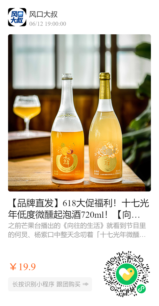 【品牌直发】618大促福利!十七光年低度微醺起泡酒720ml!【向往的生活同款】既有酒的香味又有水果风味!国内优秀的起泡酒!