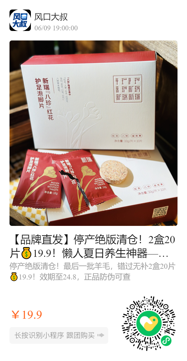 【品牌直发】停产绝版清仓!2盒20片19.9!懒人夏日养生神器—华熙生物出品.新瑞八珍红花护足泡脚片10片!最后一批羊毛,错过无补,正品防伪可查