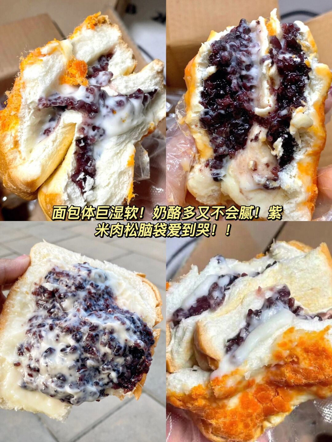 馅料超足—肉松+3层吐司+奶酪酱+紫米+岩烧芝士足足七层
