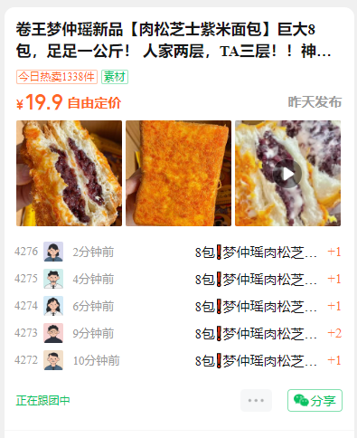 卷王梦仲瑶新品【肉松芝士紫米面包】巨大8包,足足一公斤!