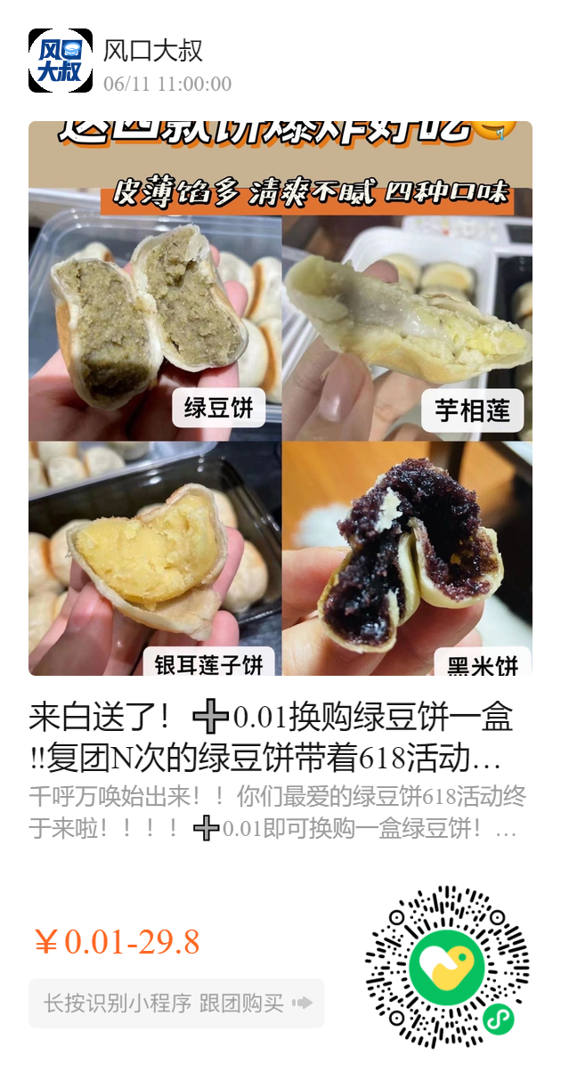 复团N次的绿豆饼带着618活动走来了🙋