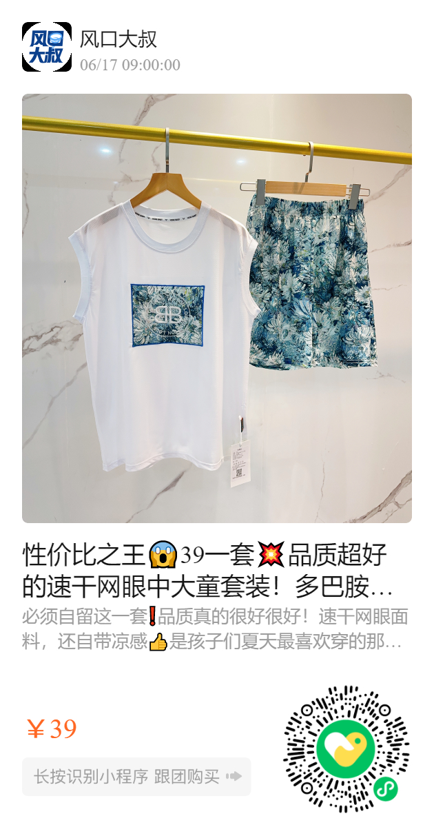 性价比之王39一套💥品质超好的速干网眼中大童套装!多巴胺穿搭男宝女宝都能穿,超级好!清凉透气,必须自留!!