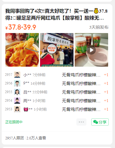 我同事回购了4次‼️真太好吃了!买一送一37.8得️罐足足两斤网红鸡爪【酸掌柜】酸辣无骨鸡爪~上架即秒完