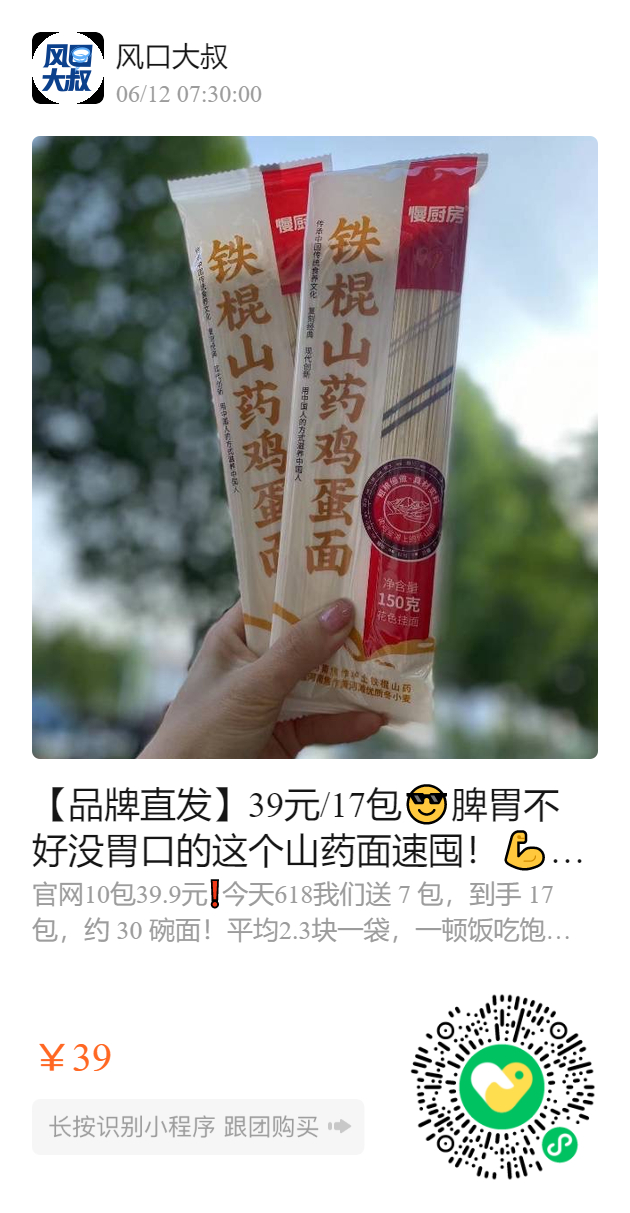 【品牌直发】39元/17包😎脾胃不好没胃口的这个山药面速囤!
