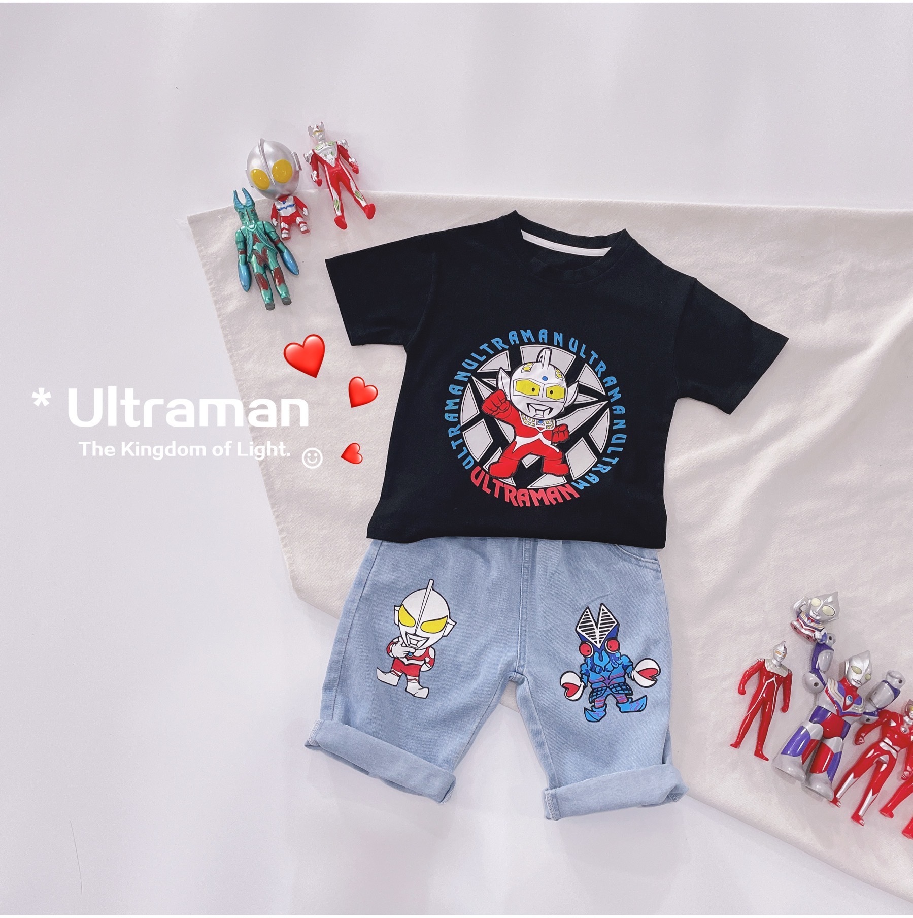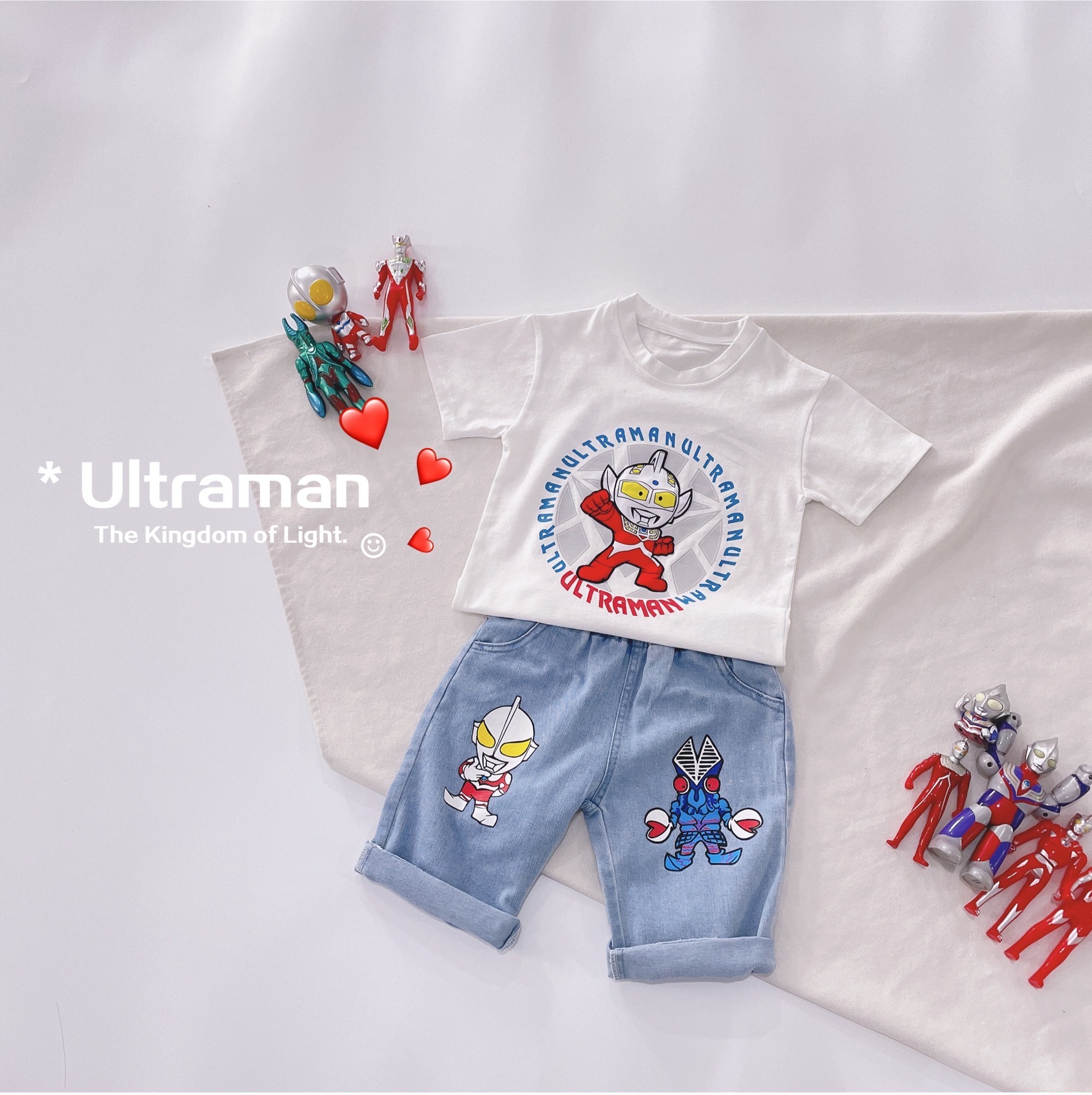 夏天的套装千千万,好看又好玩的就它啦!怀着无比激动的心情给大家上这个款,会亮的奥特曼T恤,一拍就亮,会亮诶,真的很炫酷。