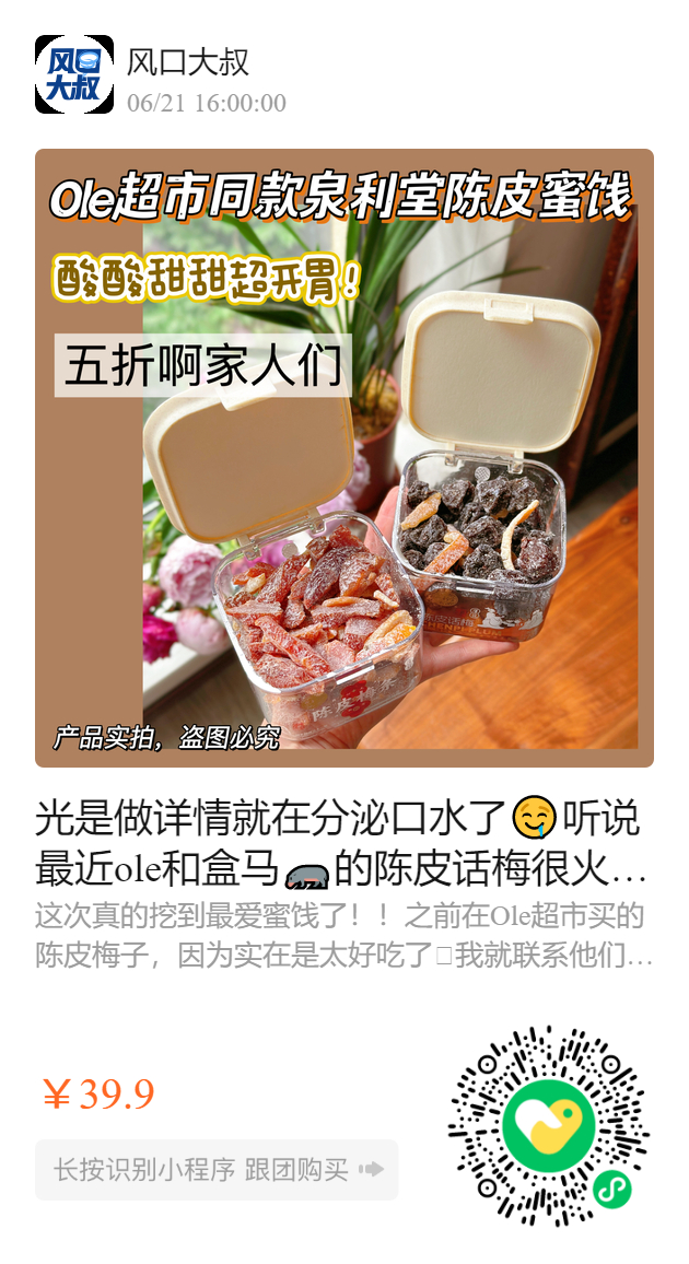 光是做详情就在分泌口水了🤤听说最近ole和盒马🦛的陈皮话梅很火!超市32.8一盒!