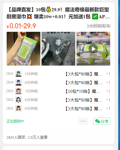 开 团 数:2845