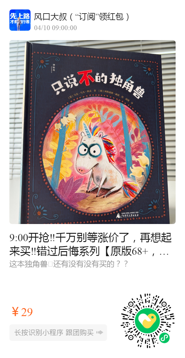 9:00开抢‼️千万别等涨价了,再想起来买‼️错过后悔系列【原版68+,台版90+】 国内很多大咖亲自下场安利这本(正版)《只说不的独角兽》两年内就已经授权23个国家🌍,果然...全世界的妈妈和孩子们都一样,对这种可爱的独角兽都无法抵抗