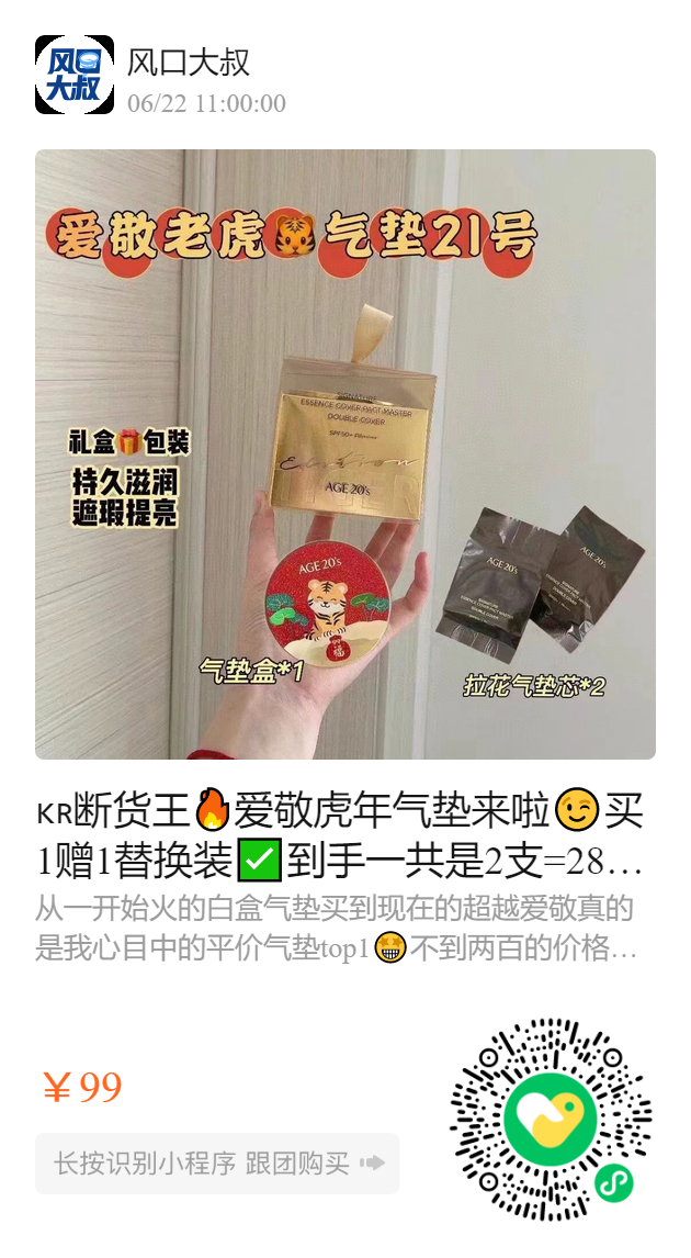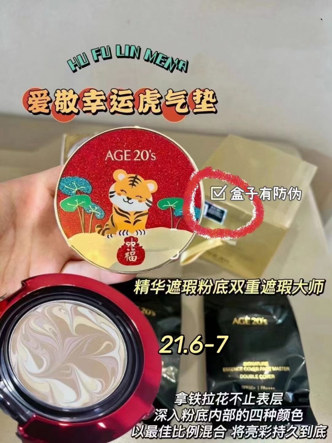 断货王爱敬虎年气垫来啦买1赠1替换装✅到手一共是2支=28g💥💥还比官旗便宜一半 两款都融入70%+的精华边化妆边护肤不要太爽~ 能揉出水珠的气垫💧上脸服帖不卡粉,打造自带磨皮的水光感~ 📅24年8月 ️有防伪