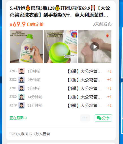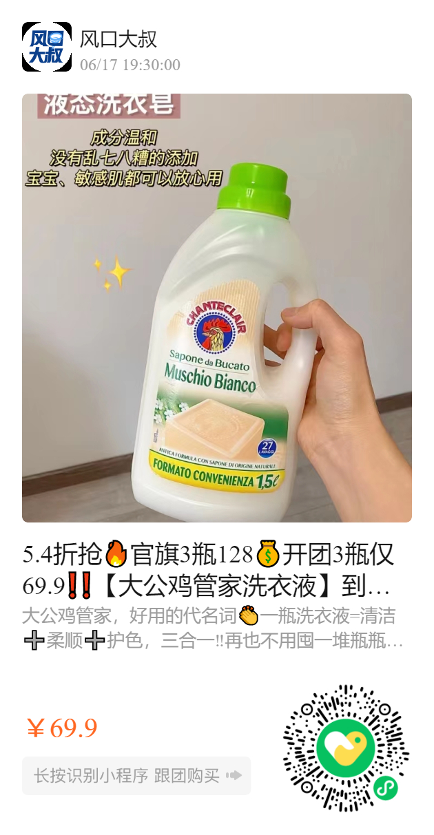 5.4折抢官旗3瓶128开团3瓶仅69.9❗️❗️【大公鸡管家洗衣液】到手整整9斤,意大利原装进口一瓶=清洁➕柔顺➕护色
