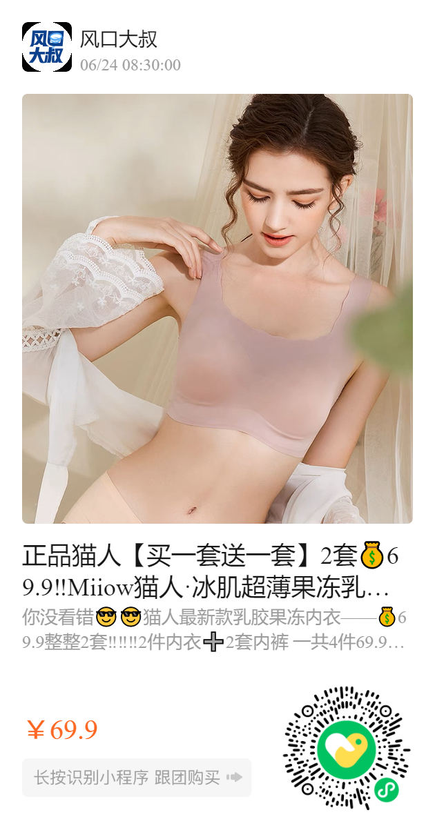正品猫人【买一套送一套】2套69.9‼️Miiow猫人·冰肌超薄果冻乳胶文胸套装!上身凉感 -5°C!超薄轻透爽、弹力巨大!