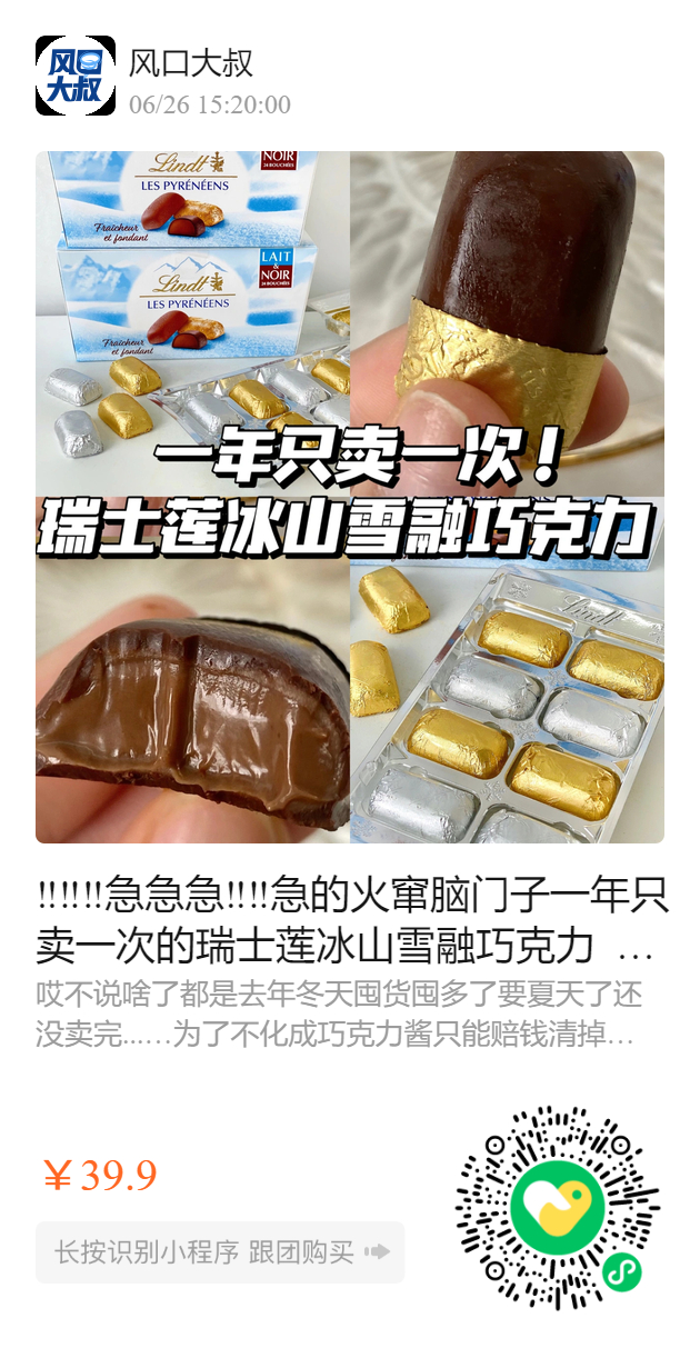 一年只卖一次的瑞士莲冰山雪融巧克力 🍫真的是因为热了 才清仓️咱们这次开的是70%黑巧克力✅天猫原价109一盒 今天半价都不到全款拿下️黑巧口味外皮脆里面丝滑,