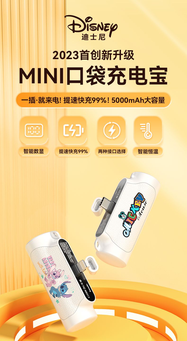 官方72小时发|小身体大能量,充电宝颜值天花板【迪士尼无线胶囊充电宝迷你便携移动电源】出行绝佳伴侣,5000毫安大容量!