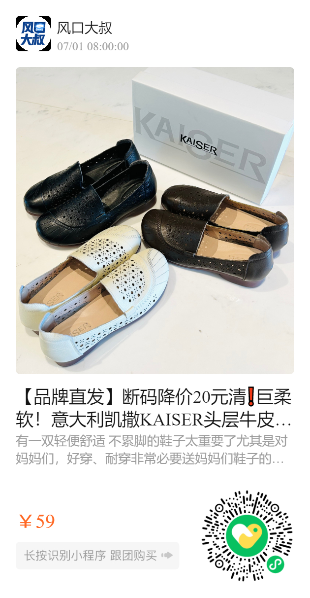 【品牌直发】断码降价20元清❗️巨柔软!意大利凯撒KAISER头层牛皮妈妈鞋,四季款➕镂空款,走路像踩棉花一样的舒适度‼