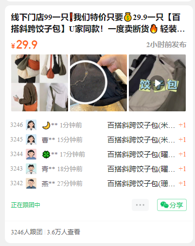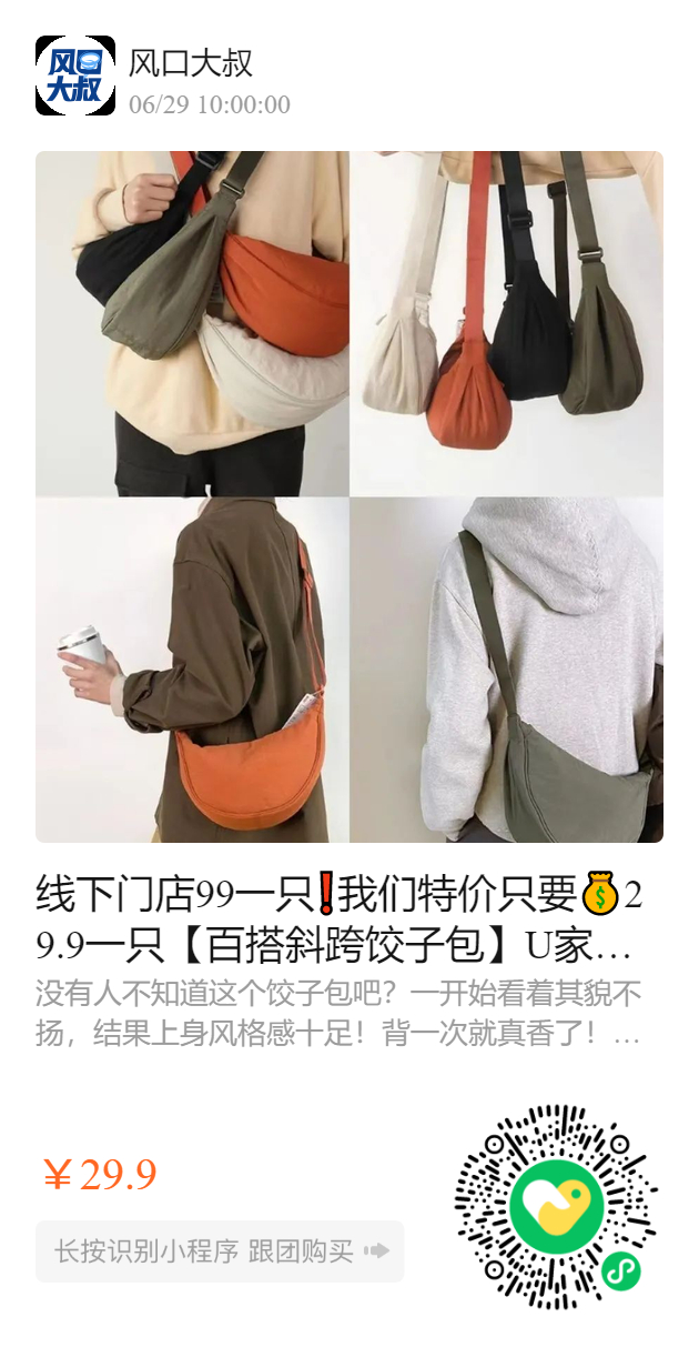 线下门店99一只❗我们特价只要29.9一只【百搭斜跨饺子包】U家同款!一度卖断货
