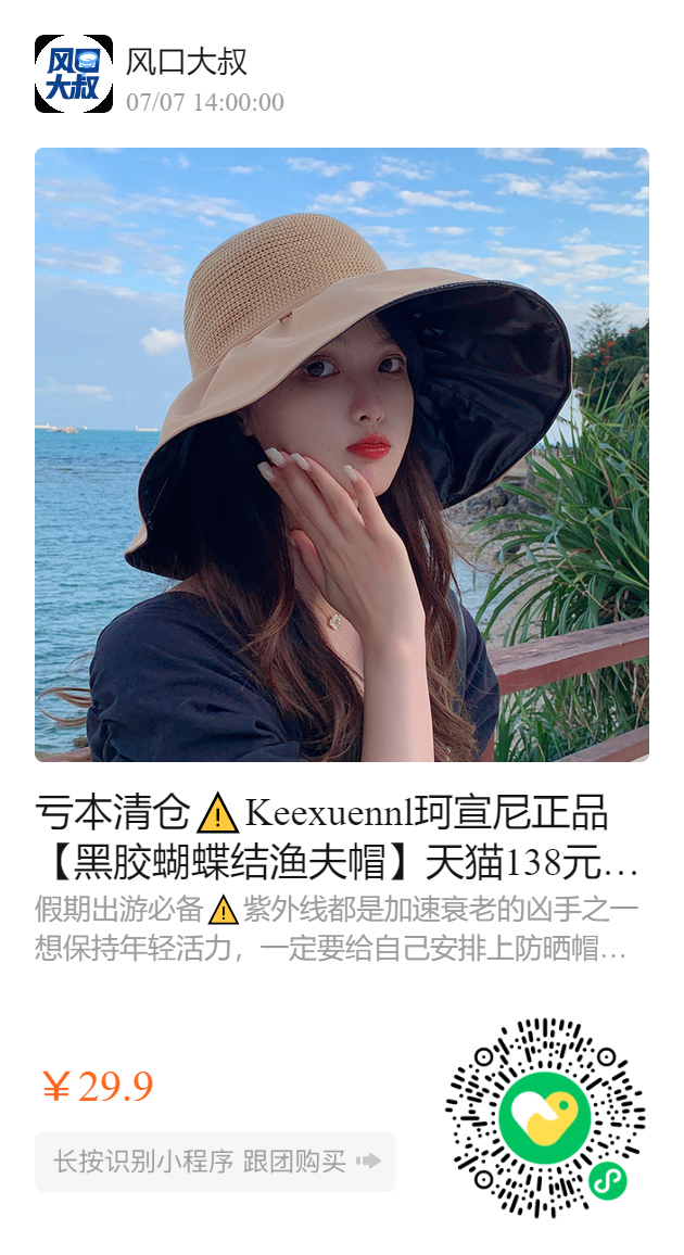亏本清仓️Keexuennl珂宣尼正品【黑胶蝴蝶结渔夫帽】天猫138元!开团仅 29.9!