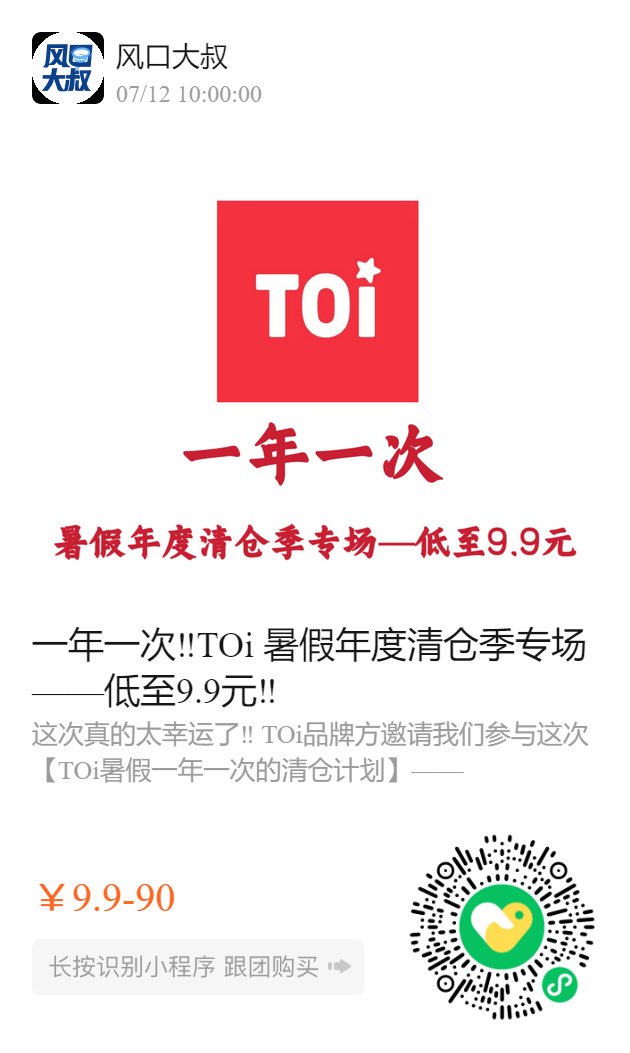 一年一次‼️TOi 暑假年度清仓季专场——低至9.9元‼️