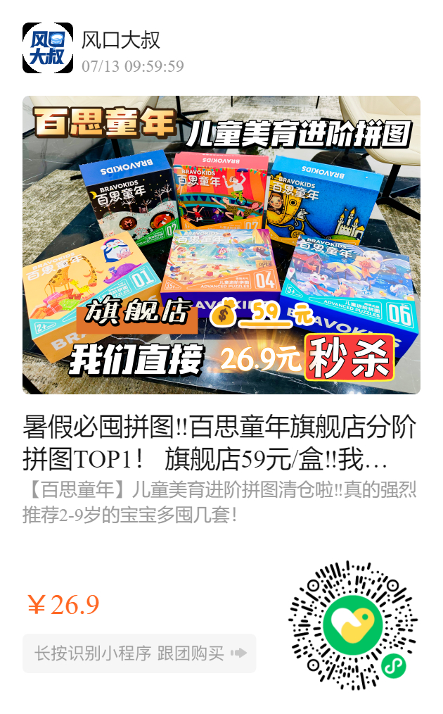暑假必囤拼图‼️百思童年旗舰店分阶拼图TOP1! 旗舰店59元/盒‼️我们直接26.9元/盒‼️清仓——