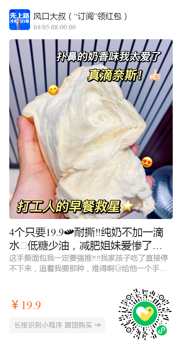 4个只要19.9耐撕‼️纯奶不加一滴水🥛低糖少油,减肥姐妹爱惨了真的是每一丝都饱含奶香,厚实饱满还有嚼劲拳头般大饱腹感还超强,一个就顶饱