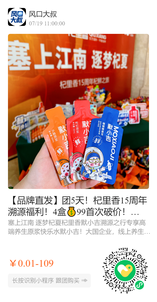 【品牌直发】团5天!杞里香15周年溯源福利!4盒99首次破价!默小吉枸杞、沙棘鲜果原浆!跟团号逢百免单,东方甄选,李佳琪力荐!不加一滴水,央视《大国品牌》荣誉品牌!