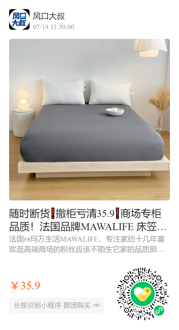 随时断货❗️撤柜亏清35.9❗️商场专柜品质!法国品牌MAWALIFE 床笠️专注家纺十几年,线下专柜300➕,品质有保障