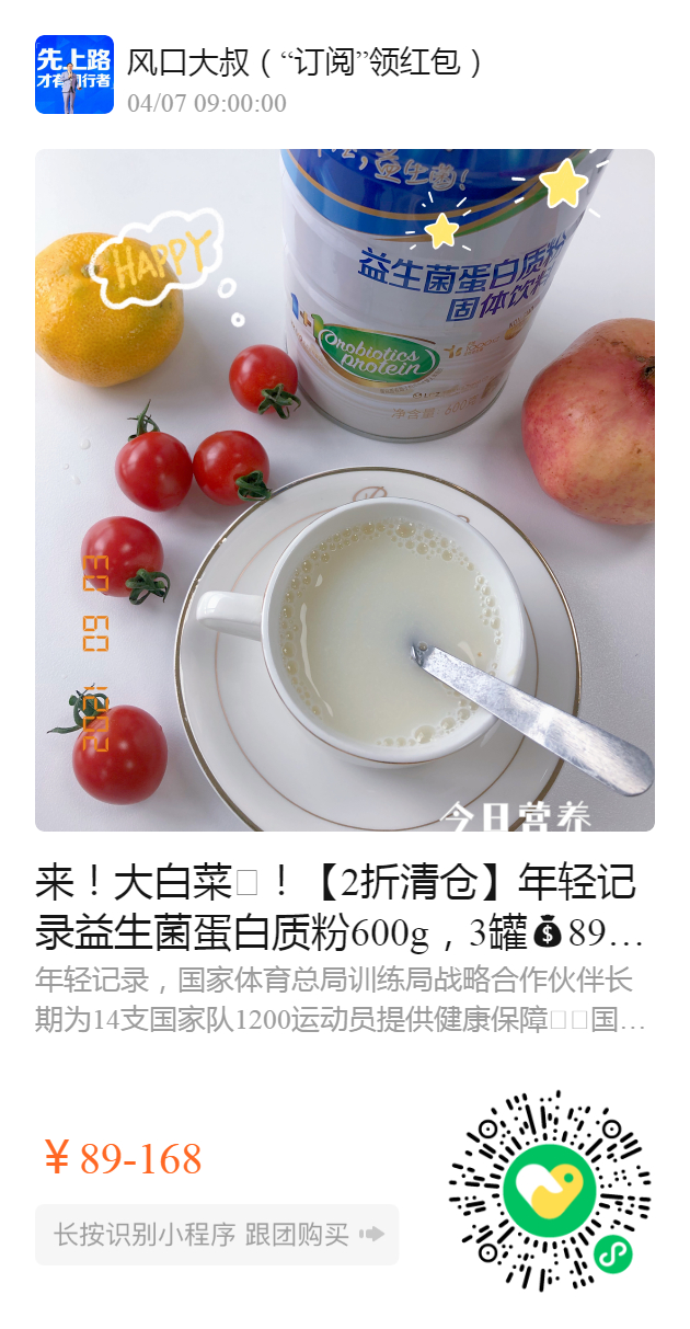 来!大白菜🥬!【2折清仓】年轻记录益生菌蛋白质粉600g,3罐89元!上海高端商场久光百货1罐138!
