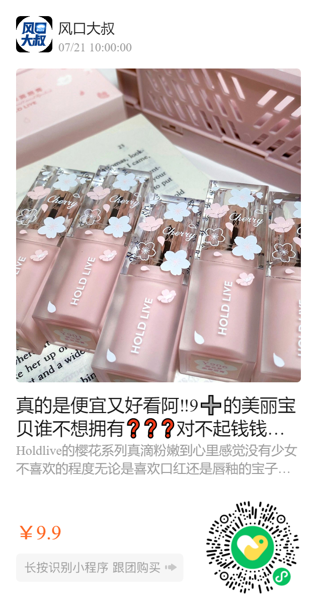 真的是便宜又好看阿‼️9➕的美丽宝贝谁不想拥有❓❓❓ 对不起钱钱👛我真的很需要介个樱花小宝贝! 钱包要捂不住了呜呜呜 hold live出的这个樱花口红、唇釉泰🉑️噜 感觉没有少女不喜欢的程度 无论是喜欢口红还是唇釉的宝子都有的挑!