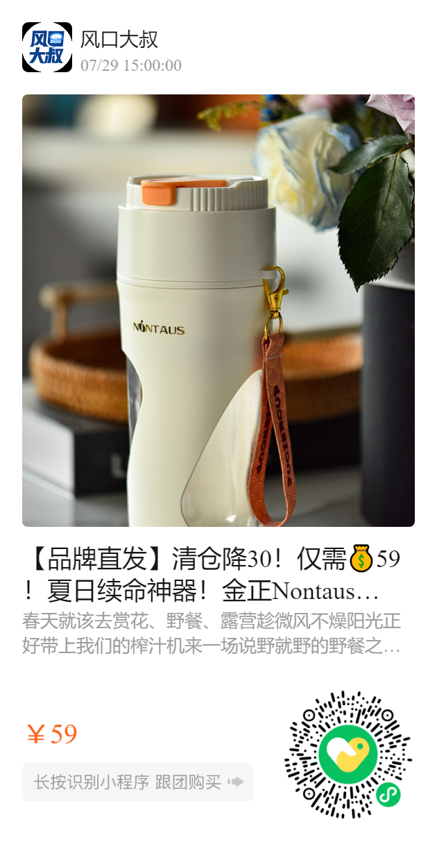 【品牌直发】清仓降30!仅需💰59!夏日续命神器!金正Nontaus榨汁杯,不是所有榨汁杯都是10叶精钢刀片,冰沙、果汁、奶昔随意做!