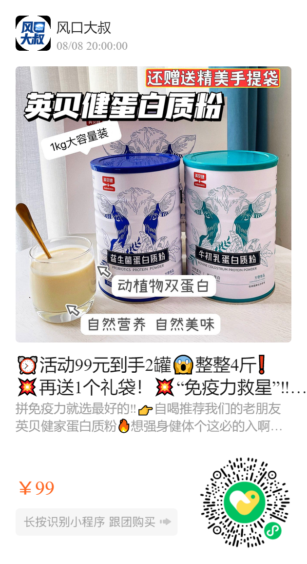 ⏰活动99元到手2罐😱整整4斤❗️💥再送1个礼袋! 💥“免疫力救星”‼️【英贝健蛋白粉】母婴店168/罐! 世界冠军力荐🏆新西兰进口乳粉! 双蛋白配方“免疫CP”🦠3岁以上都能喝! 蛋白质粉和益生菌是必囤好物! 每天一杯免疫力够给力✔️增强抵抗力 全家少生病